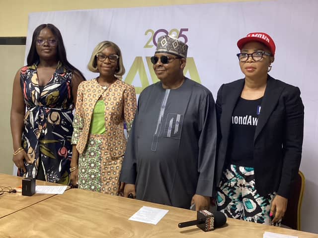 L-R: Ms Amarachi Chigbo, representative of the CEO of Twenty9th Media, 2025 Awards Website Consultant, Mr. Olayinka Makanjuola; Ms. Prisca Soares, Chairperson, Awards Panel of Judges; Mr. Salami Rasaaq Obomeile,…