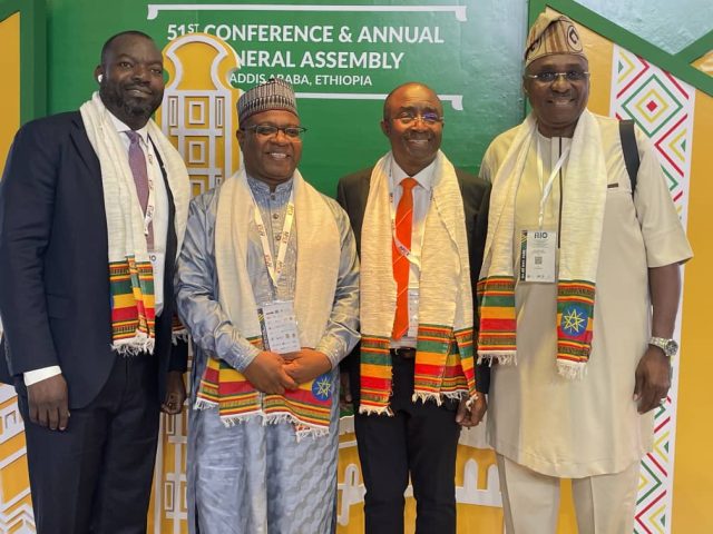 From Left: Chairman, SanlamAllianz General Nigeria, Val Ojumah; Chairman, SanlamAllianz Life Nigeria, Femi Oyetunji; SanlamAllianz Life Nigeria, Juliet Ajiboye; Managing Director, International Energy Insurance (IEI) Plc, Olasupo Sogelola; Executive Director, Operations, FBS Re, Shola Ajibade; and Group Managing Director, Norrenberger Group, Tony Edeh at the ongoing African Insurance Organisation (AIO) conference in Addis Ababa, Ethiopia.