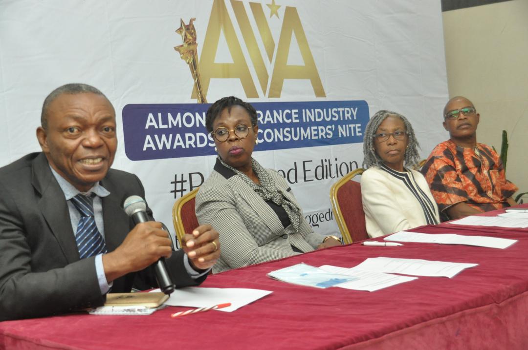 L-r: Mr. Obinna Chilekezie, Secretary, The 2025 Almond Insurance Industry Awards Panel of Judges; Chief (Mrs.) Jean Chiazor Anishere (SAN), member of the panel; Ms. Prisca Soares, Chairman of Panel, and Jide Fadun, member, during the media briefing, unveiling of award nominees and commencement of voting process of the 2025 Almond Insurance Industry Awards held in Lagos on Wednesday (06-08-2025)
