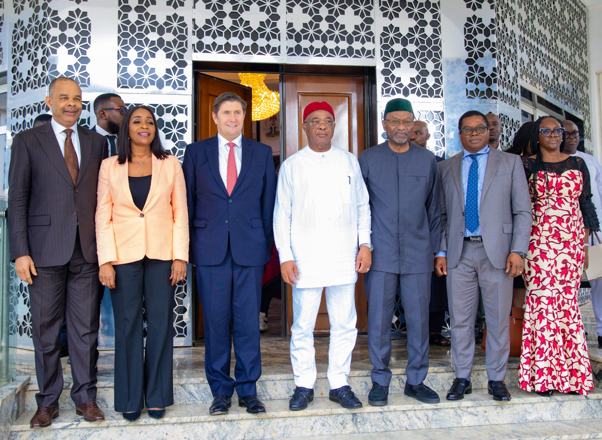L-R: Commissioner for Petroleum and Natural Gas Development, Imo State, Mr. Emeka Mgbudem; Special Adviser to the Imo State Governor on Projects, Dr. Chioma Nwachuku; CEO Seplat Energy Plc, Mr. Roger Brown; Executive Governor, Imo State, Senator Hope Uzodinma; Chairman, Seplat Energy, Senator Udoma Udo Udoma; COO Seplat Energy, Mr. Samson Ezugworie; and MD Seplat East Onshore, Mrs. Ibi-Ada Itotoi, when a key Delegation from Seplat Energy paid a courtesy visit to His Excellency, Senator Hope Uzodinma at the Governors’ Lodge, Asokoro-Abuja