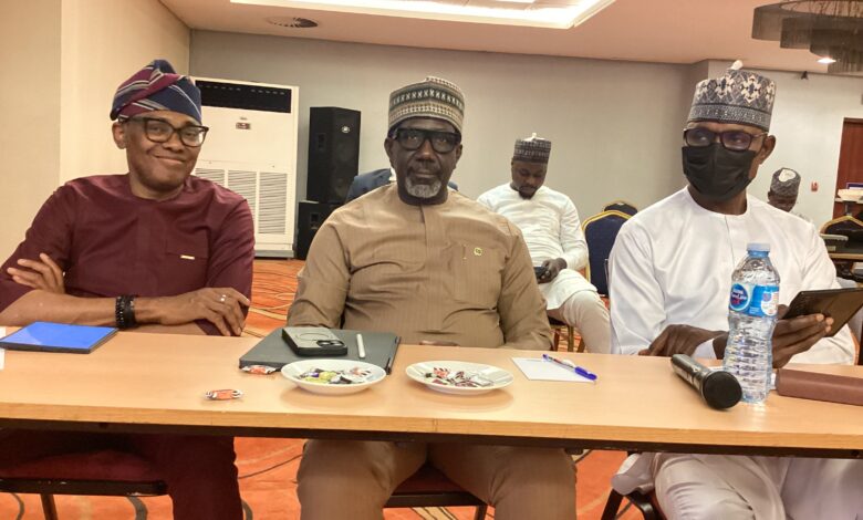 L-R: Deputy Commissioner Finance and Administration National Insurance Commission (NAICOM), Ekerete Ola Gam-Ikon; Commissioner for Insurance Olusegun Omosehin, and Deputy Commissiner Technical Dr. Usman Jankara at the 2025 Seminar for Insurance Journalists in Abeokuta, Ogun State